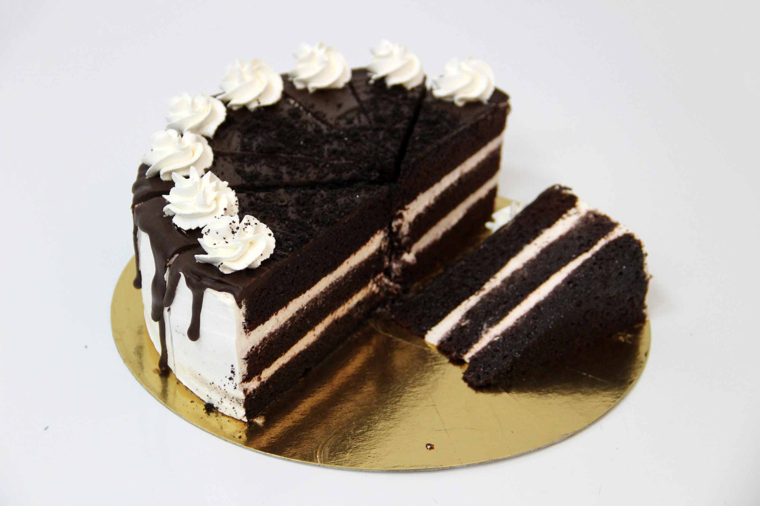 Bizcocho de chocolate, relleno  de crema de oreo con queso y galletas troceadas. Cubierto de crema, chocolate y galletas de Oreo.